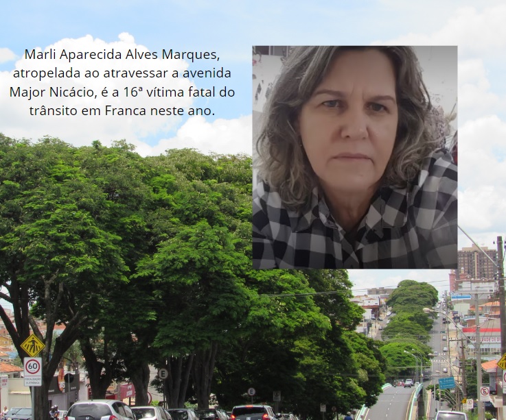 Morreu na noite desta quarta-feira (18) Marli Aparecida Alves Marques, de 71 anos, que estava internada após ser atropelada no dia anterior na avenida Major Nicácio, em Franca.